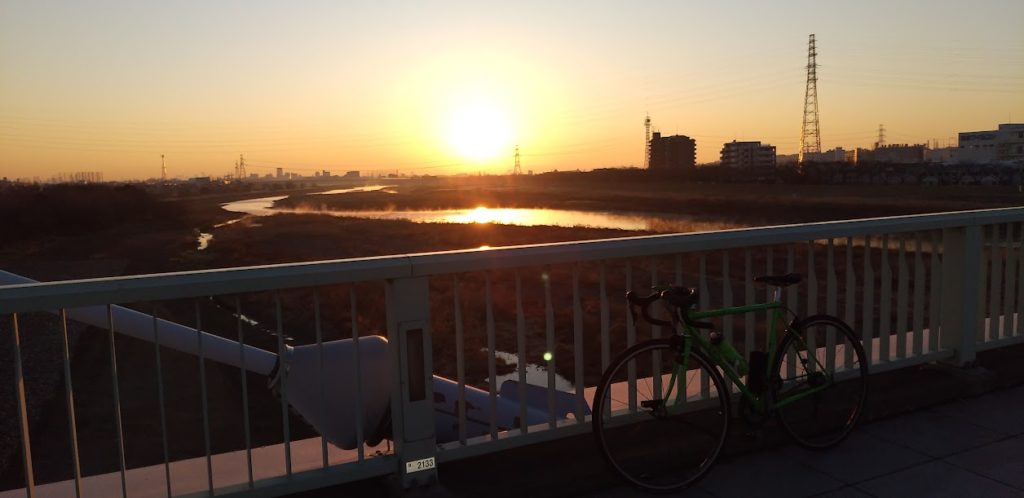 逆光ですが、クロモリロードです。